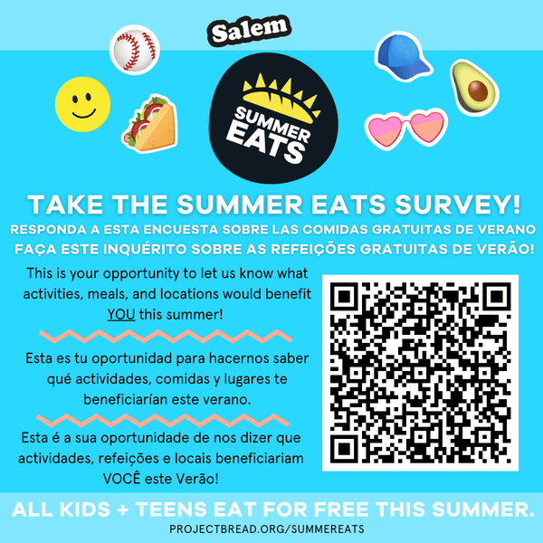 Let’s get ready for Summer! It’s now April, and summer is approaching quickly! Salem Food and Nutrition Services is hard at work putting together our summer programming for this year. We are planning meals to be served, the summer kickoff event, and activities to include at our sites throughout the summer. This year we want the summer sites to be a place where kids can come to eat, socialize and have fun without parents having to worry about any additional cost! We are launching a survey for the Salem community to learn more about what our community would like to see at these sites and also locations and times that would work best for meals to be served and activities to be held. We greatly appreciate the community’s participation in this survey, as this will lead us all to a successful and fun summer. Take the survey here.