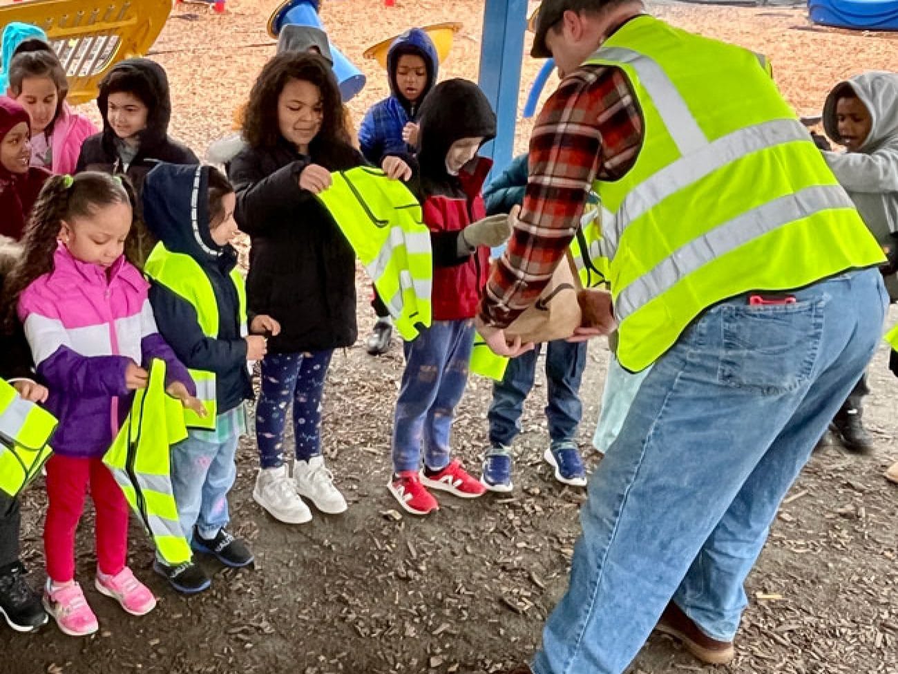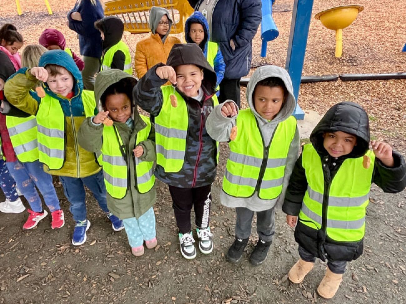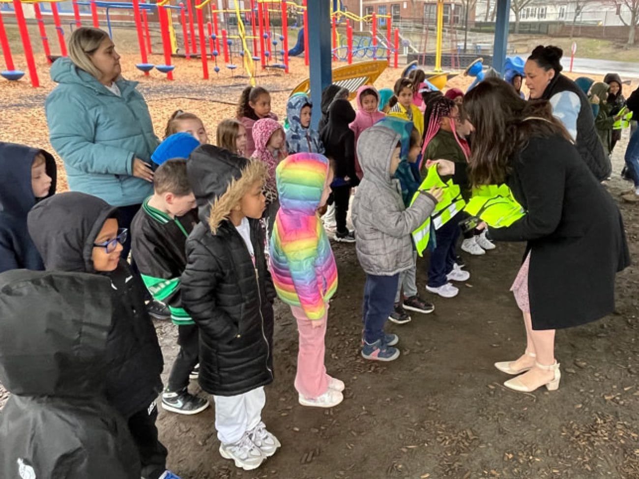 The winning entry, Chicken Nugget, was submitted by Mrs. Catherine Corriveau’s kindergarten class at Saltonstall School, and specifically by kindergarten student Elian Soto-Villanueva. At this morning’s unveiling, students were presented with yellow safety vests and chicken nugget shaped keychains by DPS Director Ray Jodoin (Salem High School Class of 1997), as well as hearty congratulations and thanks from Mayor Pangallo.