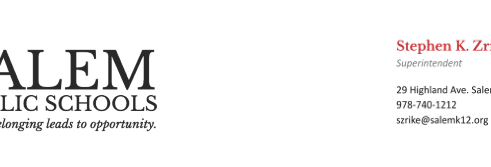 We are thrilled to welcome all of you to the 2022-23 school year in the Salem Public Schools! We are excited about the opportunities that this new school year will bring – the introduction and expansion of high-demand programs, multiple curriculum updates, facility upgrades, and the continued dedication of our highly professional staff. We are committed to finding more opportunities for our students to share their voices and ideas to shape their educational experience. It is my sincerest hope that we can put most of COVID behind us and prepare for a year with fewer interruptions for our students. We want to capitalize on the joy, enthusiasm, and talents that our students bring with them to school each day. As we enter the upcoming school year, we are guided by our three core values of belonging, equity and opportunity. More specifically: